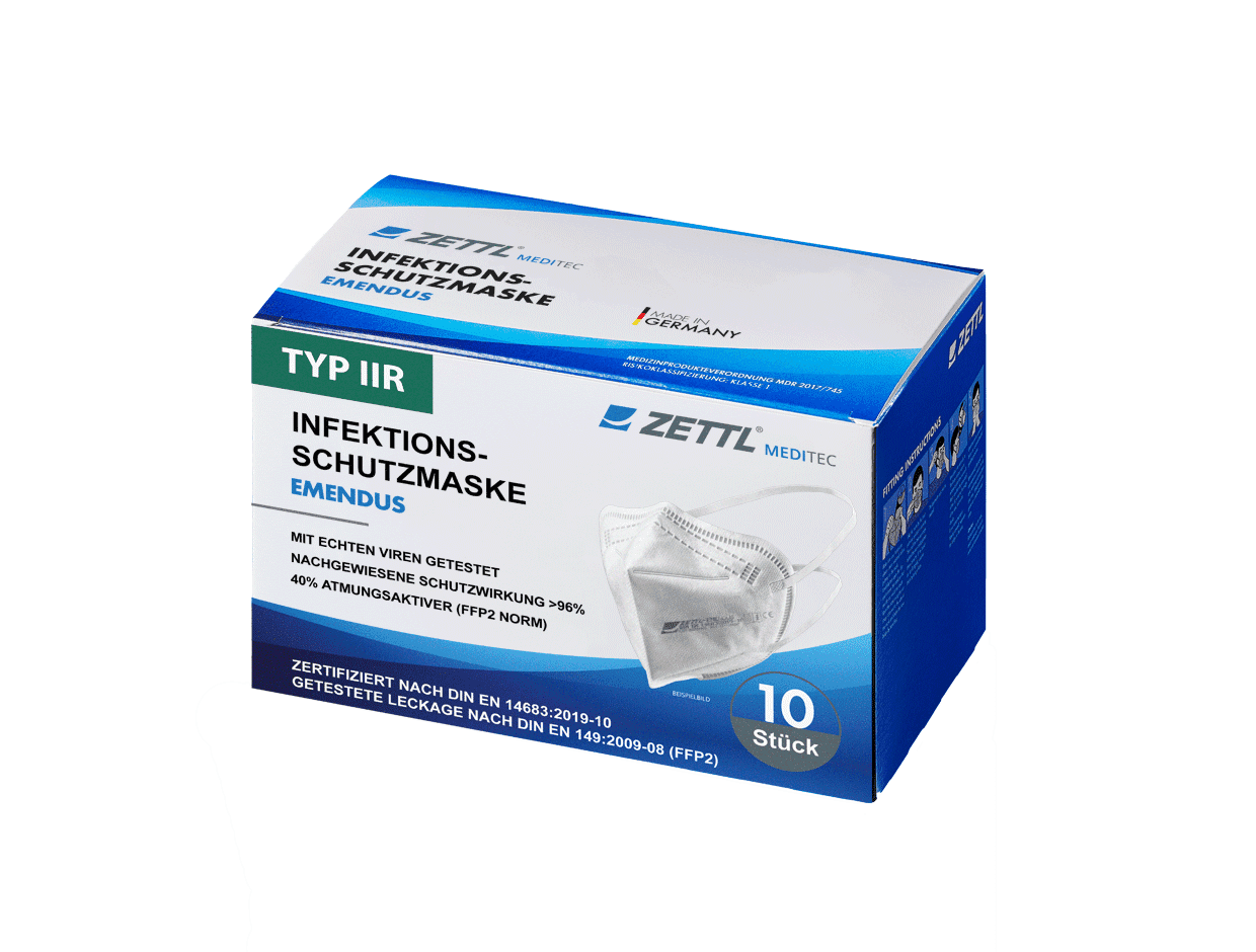 Wenn Sie größere Stückzahlen benötigen, können Sie hier ein unverbindliches Angebot anfordern. Wir melden uns zeitnah bei Ihnen.ZETTL EMENDUS Infektionsschutzmaske VE10 (Kopfbänder)